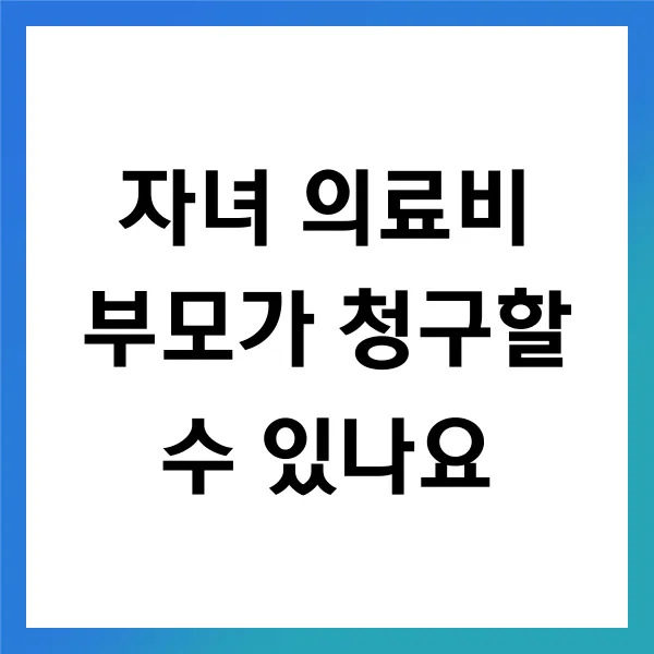 자녀 의료비 문제는 많은 부모님들께 큰 걱정거리로 다가옵니다. 이 문제에 대해 자주 받는 질문들을 중심으로 구체적인 답변을 제공하겠습니다. 먼저, 자녀 의료비를 부모가 청구할 수 있는지에 대한 기준과 절차에 대해 알아보겠습니다.